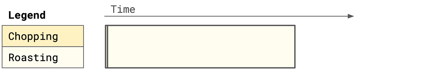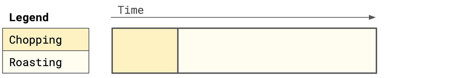 Consider an example from the kitchen. Imagine you’re making a recipe that has you chop vegetables for 15 minutes and roast them for 45.